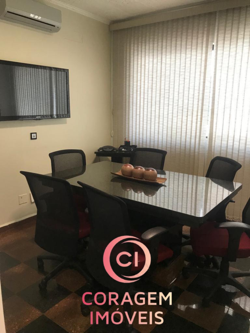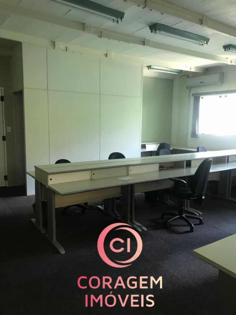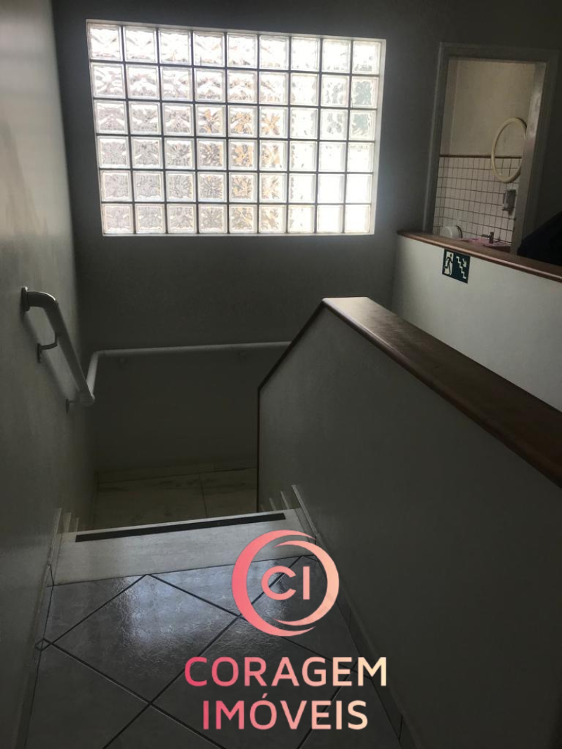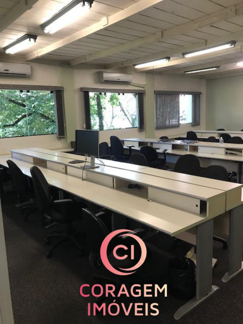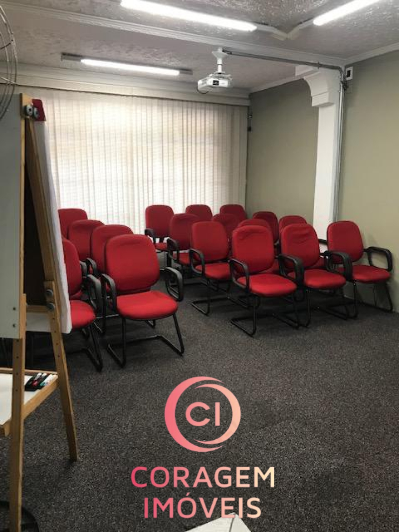 Portão para pedestres e carro (2 ou vagas), recepção, 5 salas de trabalho, 2 salas de reunião, 4 banheiros, inclusive para deficientes, auditório, copa/café, entre o pavimento inferior e superior.