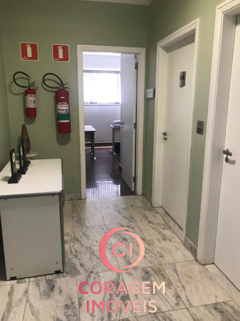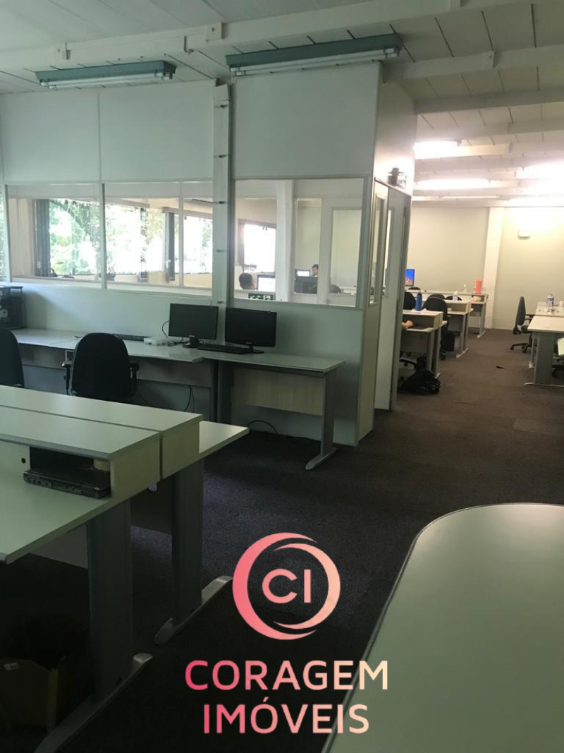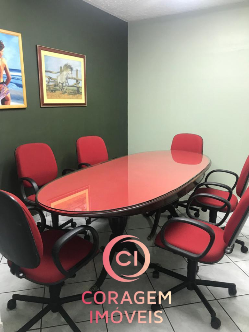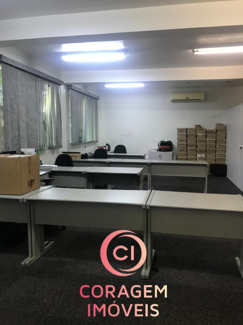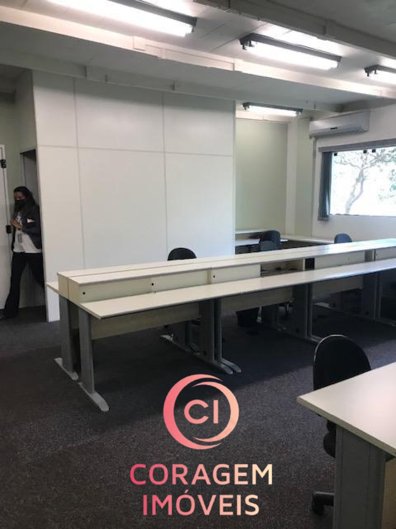 Portão para pedestres e carro (2 ou vagas), recepção, 5 salas de trabalho, 2 salas de reunião, 4 banheiros, inclusive para deficientes, auditório, copa/café, entre o pavimento inferior e superior.
